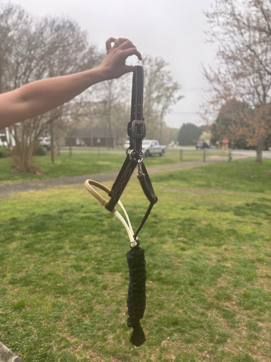 LEATHER HALTER DOUBLE RAWHIDE CROWN WITH LEAD