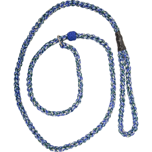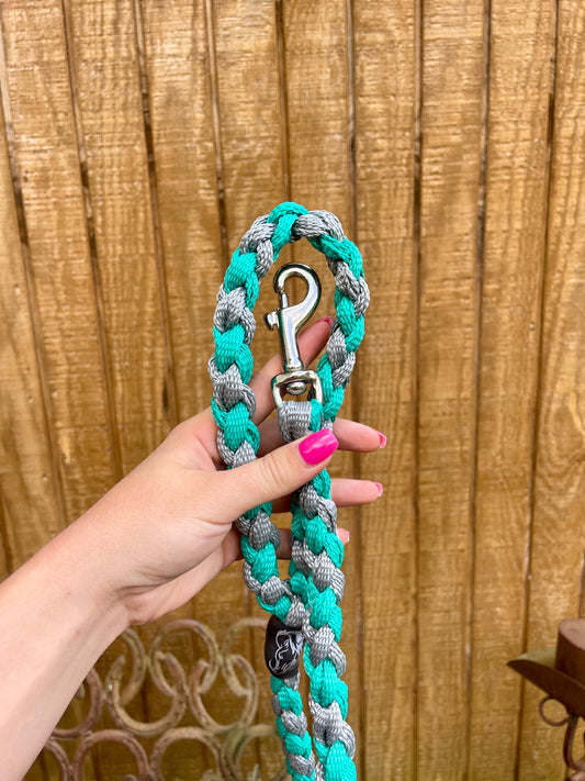 Teal and Dark Oil Braided Leather Dog Collar with Copper Hardware