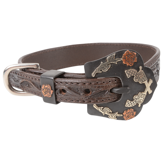 Genuine Leather Dog Collar w/ Colored Flowers & Rawhide