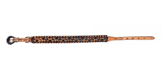Dark Oil Leather Dog Collar with Blue Southwest Nylon Overlay