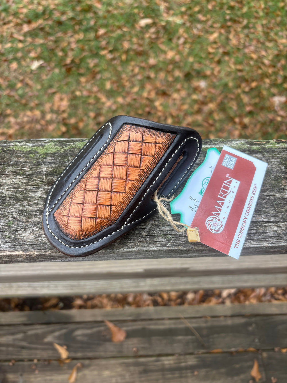 ANGLED FOLDING KNIFE SCABBORD BY MARTIN SADDLERY. SIZE: LARGE