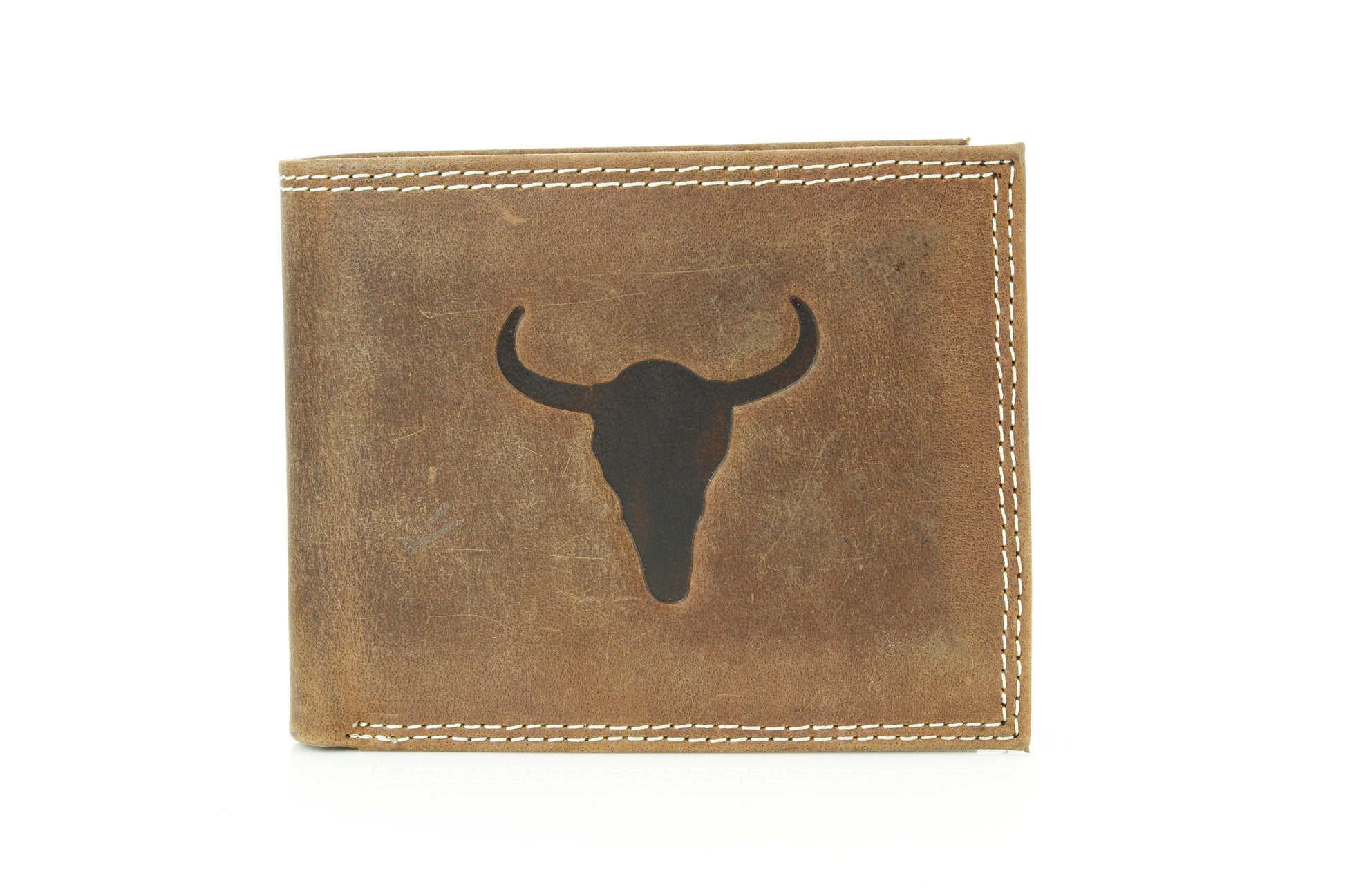 Men’s Bi-Fold Wallet with Embossed Bison Skull